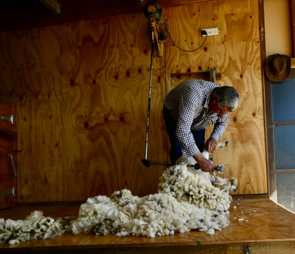 Down Under 10: Hokitika sheep farm Posted on March 5, 2024March 5, 2024 2/5/2024 – Rubicon farm One sheep worth of wool Left to Right: MJ, Sharon, Jenny, Neil, Nat, Lorne, Jill, Bonnie, Chris (sheep farmer), Gary, John, Dan, Connie Waimakariri River Previous Next